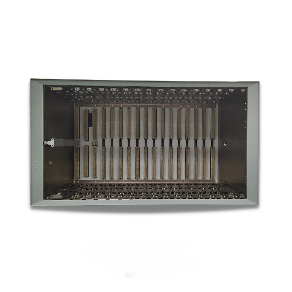 This standard 19-inch EIA rack accommodates up to 14 modules, including power supplies, I/O modules, processor modules like the 3500/22M, and display interfaces such as the 3500/93. Engineered for ease of use and long-term durability, the rack allows for simple front-panel installation and maintenance of all modules without disturbing wiring or neighboring units.