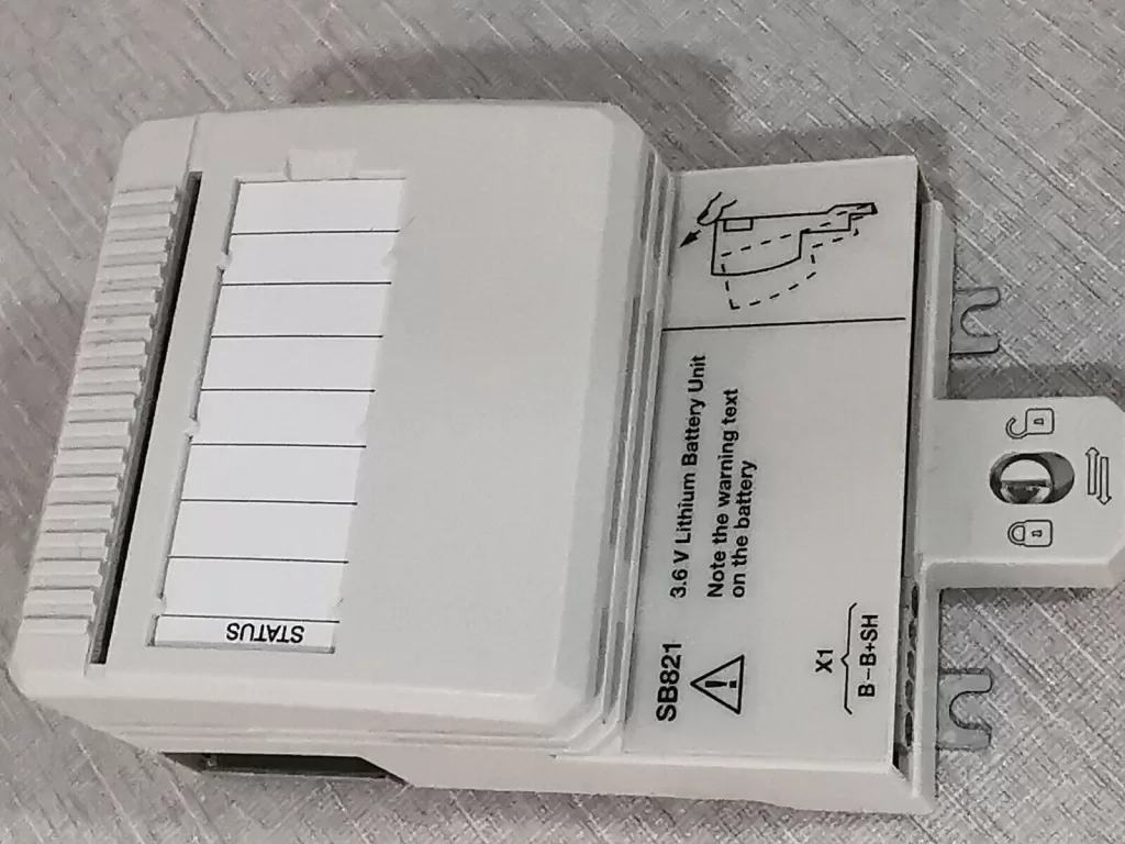 The ABB SB821 Battery Unit is an external DIN-rail mounted backup battery designed for long-duration power support, offering a minimum backup time of 1 month. Engineered to support critical CPU operations in industrial automation systems, the SB821 includes a pre-connected lithium battery and TK821V020 connection cable for easy integration.